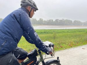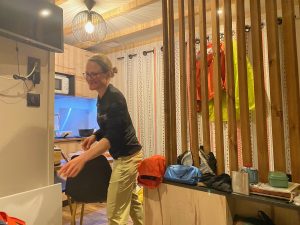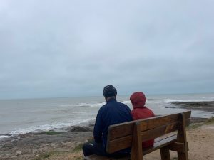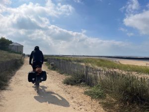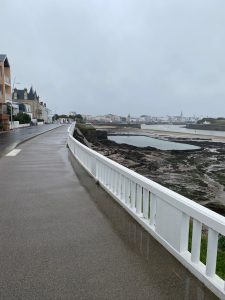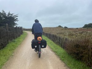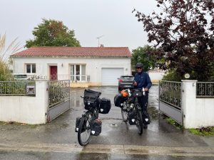 Uns war zu diesem Zeitpunkt schon klar, dass unsere Wetterresilienz (Wortschöpfung by Thomas) schon am nächsten Tag wieder auf die Probe gestellt würde: Dauerregen und kräftiger Wind aus Südwest mit Böen von bis zu 55km/h (= Gegensturm, -wind trifft es nicht mehr so ganz). Laut Wetterbericht sollte es auch so schnell nicht besser werden. Da es zudem immer schwieriger wird überhaupt offene Campingplätze zu finden (dabei reiht sich entlang der Küste einer an den nächste) und Thomas weiterhin mit den Nebenwirkungen der Antibiotika kämpft, haben wir uns erneut für die Komfortvariante entschieden und sind für einen Pausetag in einem chambre d‘hôtes gelandet. Ein bisschen verarscht (Entschuldigung) fühlten wir uns dann schon, als das Wetter am Pausetag dann deutlich besser war als angekündigt, und unsere Wirtin am darauffolgenden Tag aber lediglich mit den Worten „au moins il n’y a pas beaucoup du vent“ (wenigstens hat es nicht viel Wind) verabschieden konnte…