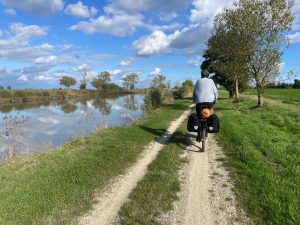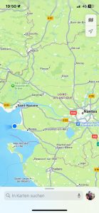 Gut erholt und bester Laune durchquerten wir Nantes: eine wirklich interessante Stadt, die auf uns sehr jung, dynamisch und innovativ wirkte, was vielleicht mit der großen Universität zusammenhängt. Es wird extrem viel gebaut  und die Stadt muss in den letzten Jahren viel in den Radverkehr investiert haben. Tolle, breite Radwege führen durch die Stadt und wenn sich die Radfahrenden nicht ähnlich anarchistisch benehmen würden wie in Tübingen, dann wäre es noch viel entspannter… Und nochmal fühlten wir uns an Tübingen erinnert: Auf unsere Fahrt quer durch die Stadt sind wir 10x mehr Lastenrädern und Longtails begegnet, als bislang auf unsere ganzen Route durch Frankreich.