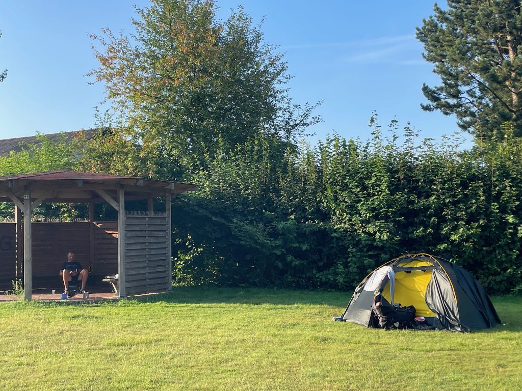 Ein besseres Foto haben wir leider nicht, der Campingplatz gehört aber unbedingt erwähnt und allen Kommunen als sehr nachahmenswertes Beispiel für geldbeutelfreundliches Campingvergnügen ans Herz gelegt: eine Wiese am örtlichen Seeschwimmbad dient als Zeltwiese, die Campinggäste nutzen die Toiletten und Duschen des Schwimmbads und das ganze kostet inklusive Eintritt ins Schwimmbad nur 8,- Euro pro Nacht – für 2 Personen wohlgemerkt!