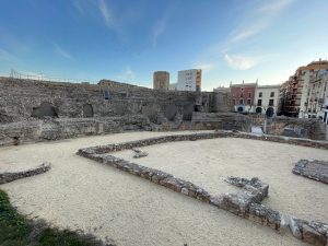 Sehr angetan waren wir außerdem von Tarragona. Da die wenigen offenen Campingplätze auf dem Weg nach Barcelona 35,- und mehr Euro pro Nacht gekostet hätten und einfache aber gemütliche Ferienwohnungen und Zimmer in Hostals bereits für 50,- Euro zu bekommen waren, hatten wir uns in Tarragona nämlich Mitten in der Altstadt eingemietet, nur einen Steinwurf von der Kathedrale entfernt. Der abendliche Spaziergang durch das historische Viertel führte uns zu mehreren Ausgrabungsstätten, an denen das römischen Tarraco sichtbar wird. Gleichzeitig wirkte die Stadt jung und lebendig und es herrschte eine sehr angenehme Stimmung in den Gassen mit einladenden Geschäften, Cafés, Bars und Restaurants.