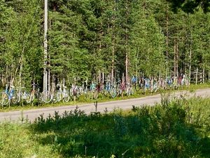 Nach drei Tagen hatten wir die Schnauze von der offiziellen Eurovelo-Stecke auf der E75 gestrichen voll – Schilder für den Fernradweg haben wir übrigens keines gesehen, vermutlich wissen selbst die Finnen, wie peinlich es ist, eine solche Straße als ausgewiesene Qualitäts-Radroute zu führen. Also bogen wir nach Westen ab, um so schnell wie möglich nach Schweden zu kommen. Immerhin wurde der Verkehr auf den kleinen Straßen deutlich entspannter und die Fahrt durch den weiterhin eher langweiligen Waldtunnel etwas weniger nervenaufreibend.