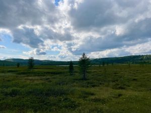 SCHWEDEN: in Sachen Landschaft, Mücken, Temperaturen und Luftfeuchtigkeit sehr vergleichbar mit dem finnischen Teil Lapplands. Vor allem am zweiten Tag mussten wir aufpassen, dass wir vor Langeweile nicht vom Rad fallen, aber der Dauerregen hielt uns wach. Und an einem Abend wurden wir zur Abwechslung statt von gewöhnlichen Mücken von zigtausenden winzigen Gnitzen heimgesucht. Aber was die Atmosphäre anbelangt ist der schwedische Teil Lapplands eine ganz andere Geschichte als der finnische!