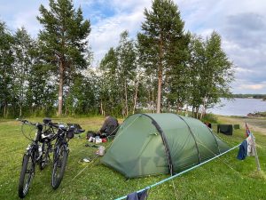 Da Lappland insgesamt wenig zum verweilen einlud, haben wir in den vergangenen 14 Tagen 1.000 Kilometer geschafft. Das passte aber auch ganz gut in den Plan, denn ein bisschen müssen wir jetzt tatsächlich auf die Tube drücken, weil wir in fünf Wochen zu Hause sein wollen. Völlig unverhofft ist Meike nämlich vor gut drei Wochen (bei Instagram..) über eine Stellenanzeige des vsf gestolpert. Das ist der Fachverband, in dem unser FahrRadLaden am Haagtor Mitglied war und der sich für die Vernetzung von Händlern untereinander und mit den Herstellern einsetzt und sich außerdem politisch für das Fahrrad und den Radverkehr engagiert. Ein tolles Arbeits(um)feld und daher stand der vsf bei Meike schon vor der Reise auf der Arbeitgeber-Wunschliste für nach der Reise an oberster Position. Wie der Zufall oder das Schicksal manchmal so spielt… Da die Stelle in der Veranstaltungs- und Büroorganisation Meike geradezu auf den Leib geschneidert ist, war sofort klar, da muss sie sich bewerben. Es folgte ein Bewerbungsgespräch per Video-Call aus dem Zelt bei strömendem Regen. Und nun heißt es: Mitte September endet die Reise und dann startet ein neues Kapitel für uns in Marburg!