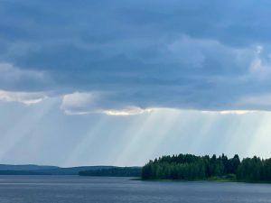 Mit der monotonen Waldlandschaft haben wir ja gerechnet. Und auf den ersten 300 Kilometern Richtung Süden entlang der E75 – einer Stecke arm an Kurven aber reich an kräftezehrenden Wellen – durften wir beobachten, wie die Bäume rechts und links der Straße langsam immer größer wurden und sich immer mehr Nadelbäume unter die Birken mischten. Hin und wieder boten sich zur Abwechslung Blicke auf einen der vielen finnischen Seen, die teilweise ebenso gigantische Ausmaße haben, wie die Waldflächen um sie herum.