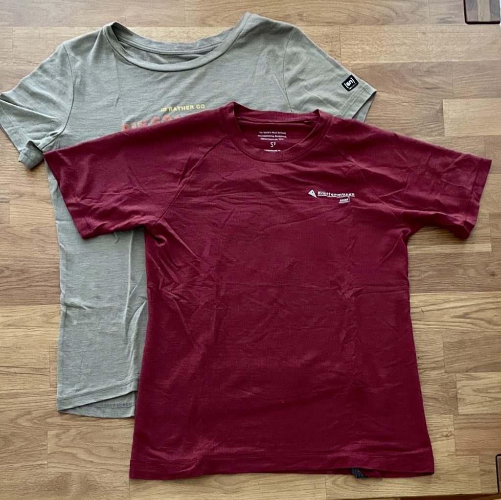 Wollshirts kann man viele Tage anziehen, ohne dass sie nennenswert muffen, Lyocell schafft das vermutlich nicht ganz so lang (soll aber auch geruchshemmend sein) und auch absorbiert es Flecken nicht so schön wie Wolle, dafür trocknet es in Nullkommanichts und das T-Shirt ist ein echtes Leichtgewicht.