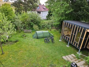 Damit wären die Anlaufstellen inklusive gefülltem Kühlschrank, Waschmaschine und gemeinsamen Erinnerungen fürs Erste abgehakt und so langsam tasten wir uns ans „echte“ Outdoorleben ran. In Schleswig-Holstein gibt es etwa 30 kostenlose Trekkingplätze an denen man in der Regel ohne Anmeldung sein Zelt für eine Nacht aufstellen darf. Wasser und andere Annehmlichkeiten gibt es nicht, Katzenwäsche und Schäufelchen müssen genügen. Ganz passend lag unser erster Trekkingplatz im Steinzeitparks in Albersdorf. Die hatten damals auch noch keine Duschen ;-). Wegen unseres anstehenden Reifenwechsels sind wir jetzt aber für insgesamt drei Nächte auf dem Campingplatz in Husum und freuen uns über den Aufenthaltsraum, den es hier gibt (was auf den Campingplätzen inzwischen ja sehr selten geworden ist).