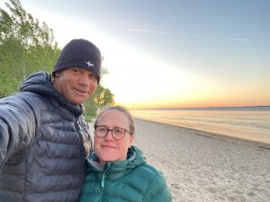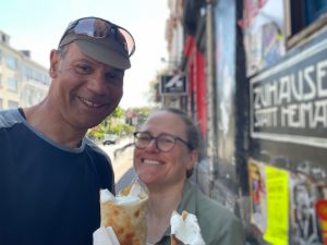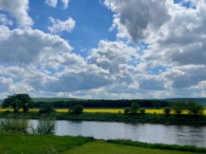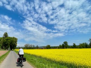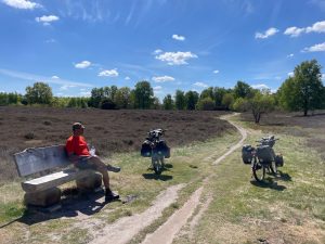 Abgesehen von den Scherereien mit dem Material liegen hinter uns aber sehr entspannte Verwöhntage. In Marburg hat uns Uwe mit einem leckeren Frühstück verabschiedet und nach zwei kaltnassen Nächten am Edersee wurden wir von Sandra und Andreas in Kassel herzlichst empfangen und sogar mit Sauna verwöhnt! Bei herrlichem Wetter ging es dann in vier Etappen bis Delmenhorst, wo wir wieder zwei Nächte bei unseren Freunden Iri und Georg verbringen durften. Thomas traf sich dann noch mit ein paar Jugendfreunden zum saunieren und grillen und schwelgte in Erinnerungen. Auf dem Weg Richtung Elbe dann noch der obligatorische Stop im „Viertel“ von Bremen für das kulinarische Highlight: ein Rollo „vom Eck“. Und nur eine halbe Tagesetappe weiter erwartete uns schon die nächste Verwöhnung mit einem schönen Grillabend bei Yvonne und ihrer Familie.