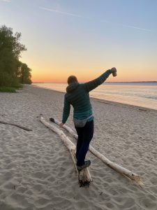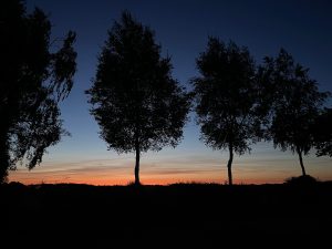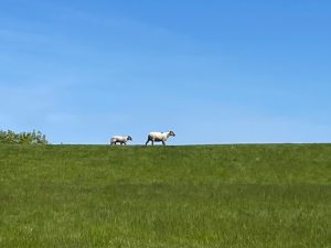 Von hier aus sind es noch 70 Kilometer bis Dänemark. Dort stehen so Abenteurern wie uns über 2.000 sogenannte Shelter zur Verfügung, kleine Unterstände in denen man übernachten darf – meist kostenfrei oder gegen eine kleine Gebühr, je nachdem ob der Betreiber öffentlich oder privat ist und wie spartanisch oder komfortabel die Ausstattung ist: Wasser, Grillstelle, (Plumps)klo, (Kaltwasser)Dusche, … Manchmal kann man bei diesen naturnahen Plätzen auch sein Zelt aufbauen, normalerweise schläft man aber in der offenen Holzhütte. Die Idee der Shelter entstand in den 1980er Jahren, initiiert von der dänischen Naturschutzbehörde, um den nachhaltigen Tourismus zu fördern. Schönes Konzept, an dem sich unsere Fortsbehörden etc. gerne ein Beispiel nehmen könnten… Die Buchung, sofern erforderlich, erfolgt über eine App. Wir haben beide noch nie in so einem Shelter genächtigt und sind sehr gespannt.